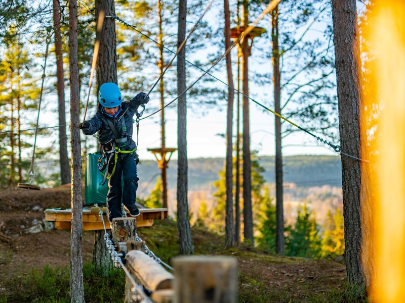 Velkommen til en aktiv høst! Bruk kroppen og utfordre deg selv i klatreparken Høyt & Lavt Modum.