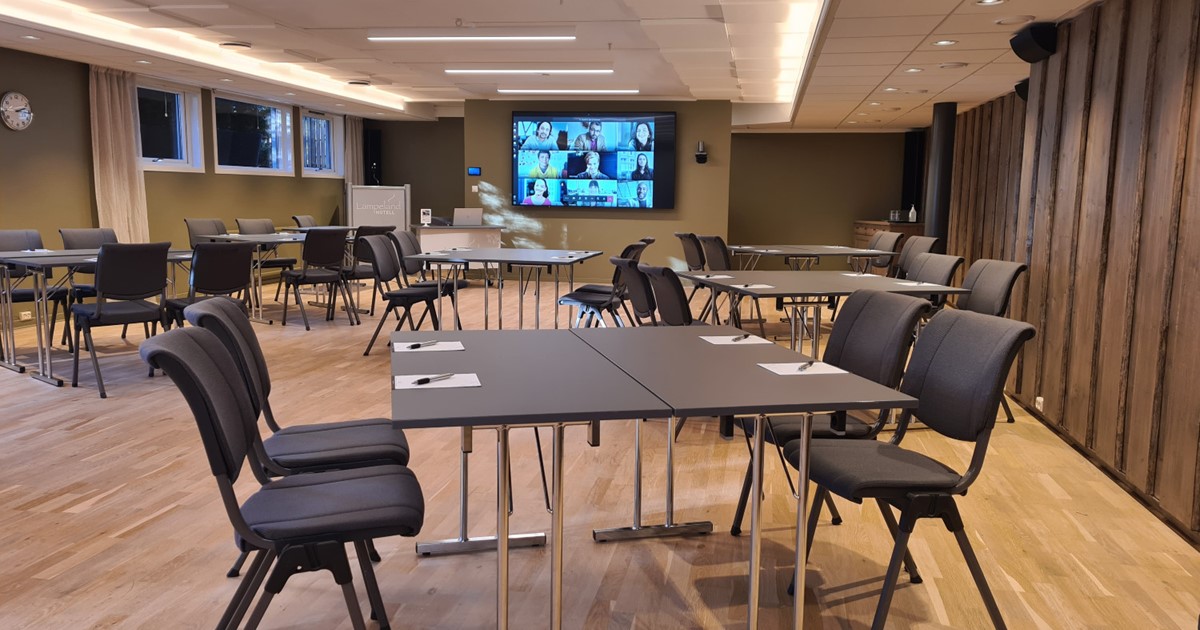 Vi har også videokonferanseutstyr for digitale og hybride møter.
