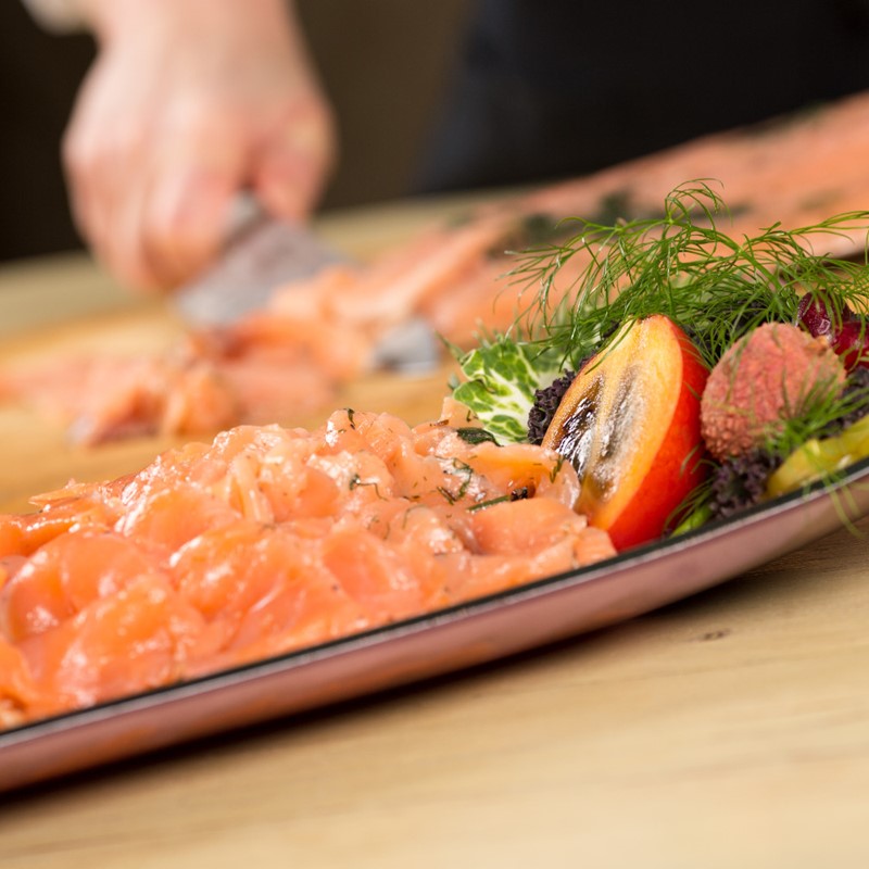 - Ostefylt røkelaksrullade på hjertesalat (4,7)