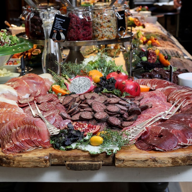 - Assortert spekemat - spekeskine, fenalår, tre typer spekepølse