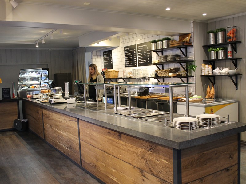 Spiseri kl 9.30 - 20 hver dag, med henteluke til kl 21.00 for saftige burgere og andre hurtige måltider.